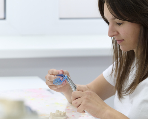 Eines unserer Spezialgebiete ist die Anfertigung kieferorthopädischer Geräte. Beginnend bei der einfachen Retentionsplatte über die Clear Aligner (CA) Technik, bis hin zu Geräten nach Hansa und Fränkel, fertigen unsere erfahrenen KFO-Spezialisten jede Apparatur nach ihren individuellen Wünschen.